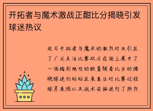 本文将围绕“富勒姆主场迎战雷J,双方争夺英超宝贵积分的精彩对决”这一主题展开,详细探讨比赛背景、球队现状、战术分析和球迷反响四个方面。首先,文章将介绍两队在英超联赛中的重要性以及本场比赛前的状态。接着,将分析双方的战术思路和可能的阵容配置,以预测比赛的发展趋势。此外,文中还会探讨球迷对这场关键之战的期待和反应,通过这些内容全面呈现这场比赛的重要性与精彩之处。最后,文章将总结比赛对两队未来发展的影响...